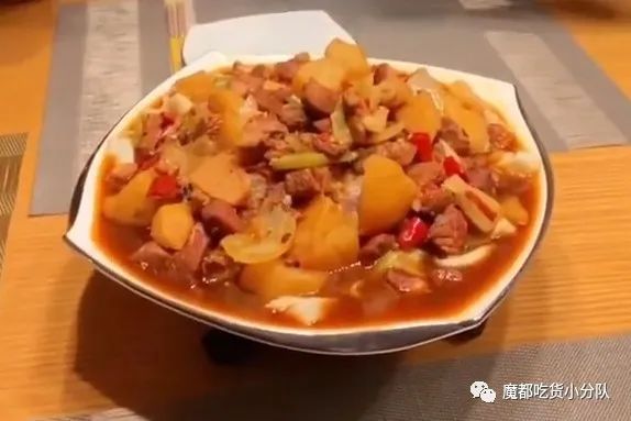 6⃣️小火慢炖:倒入水,喜欢汤汁多一点可以多倒点,小火炖20分钟,放入洋葱青红辣椒