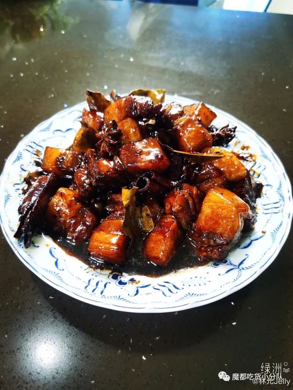 必备材料:五花肉、葱姜、料酒、老抽、生抽、白砂糖、冰糖、香料