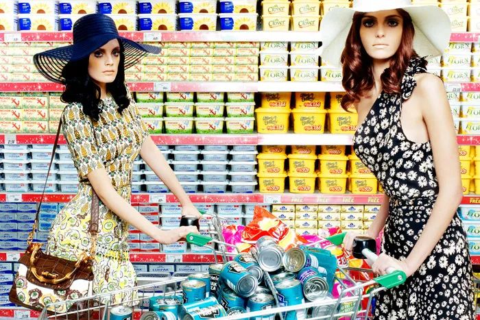 很显然,奥尔德里奇并不是在营造真实,真实也无需用摄影手段来营造,它就存在在那里,在虚构幻境所传递的信息里,那是一种对这世界的担忧,对浮华的广告审美与泛在消费的焦虑和压力。一如奥尔德里奇略带的黑色幽默感,这种焦虑竟然就堂而皇之地刊登在时尚杂志里,矛盾又讽刺,艺术似乎再次被升华。奇异的是,或许归功于鲜艳色彩的粉饰与神秘的隐喻,图像轻而易举地引入了观者,以时尚杂志为媒介传递的对消费主义不安的信息,反而为时尚商品披上了一层独特的光环。