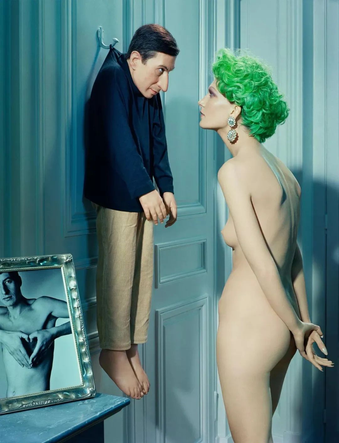在奥尔德里奇的作品里女性总是占据C位,在童年父亲角色缺席的他看来,女性拥有一种强大的能量,在他构建的虚拟世界里,作为领导者,洞察一切,捕捉着我们的视线。与艺术家莫瑞吉奥·卡特兰(Maurizio Cattelan)的合作中,奥尔德里奇将一位赤裸的模特与卡特兰的雕塑摆放在一起,有着压倒性气势的女性仿佛对他的作品表示质疑与不屑。