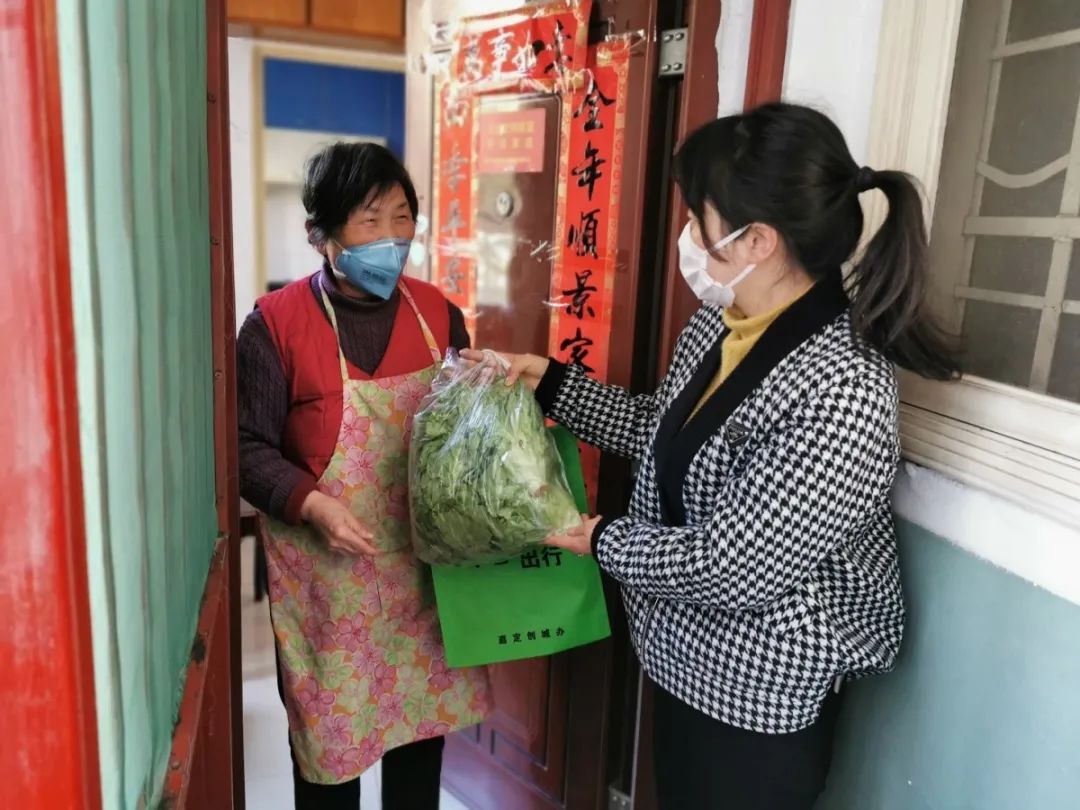 收到“爱心蔬菜”后,桃园社区立即动员社区工作人员和党员志愿者,为社区援鄂医护人员家庭、高龄困难老人、社区居家隔离户以及社区老干部一一送上门。