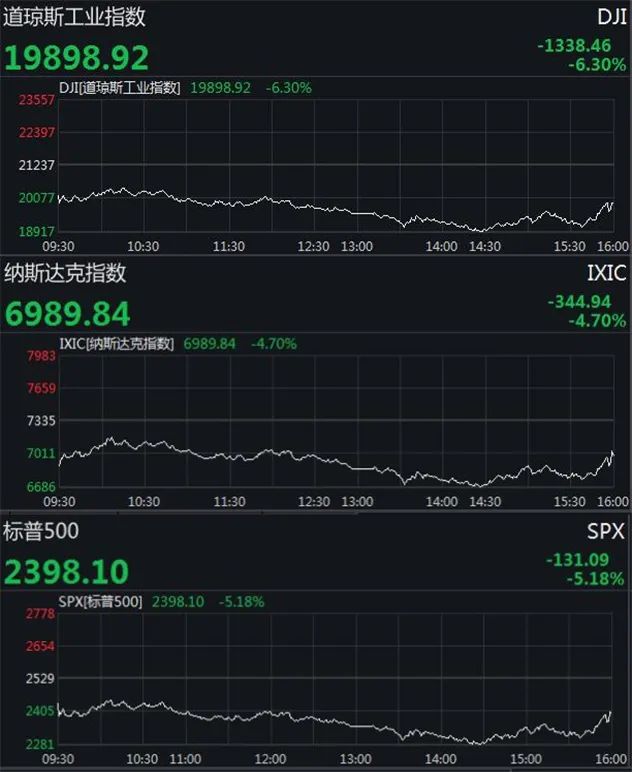 当日,美股下跌再次触发熔断。这是美股两周内第四次熔断。其中道指下跌约1300点,收于19898.92点,这意味着,2017年1月20日特朗普宣誓就任美国总统以来,道指的涨幅几乎全部抹去。