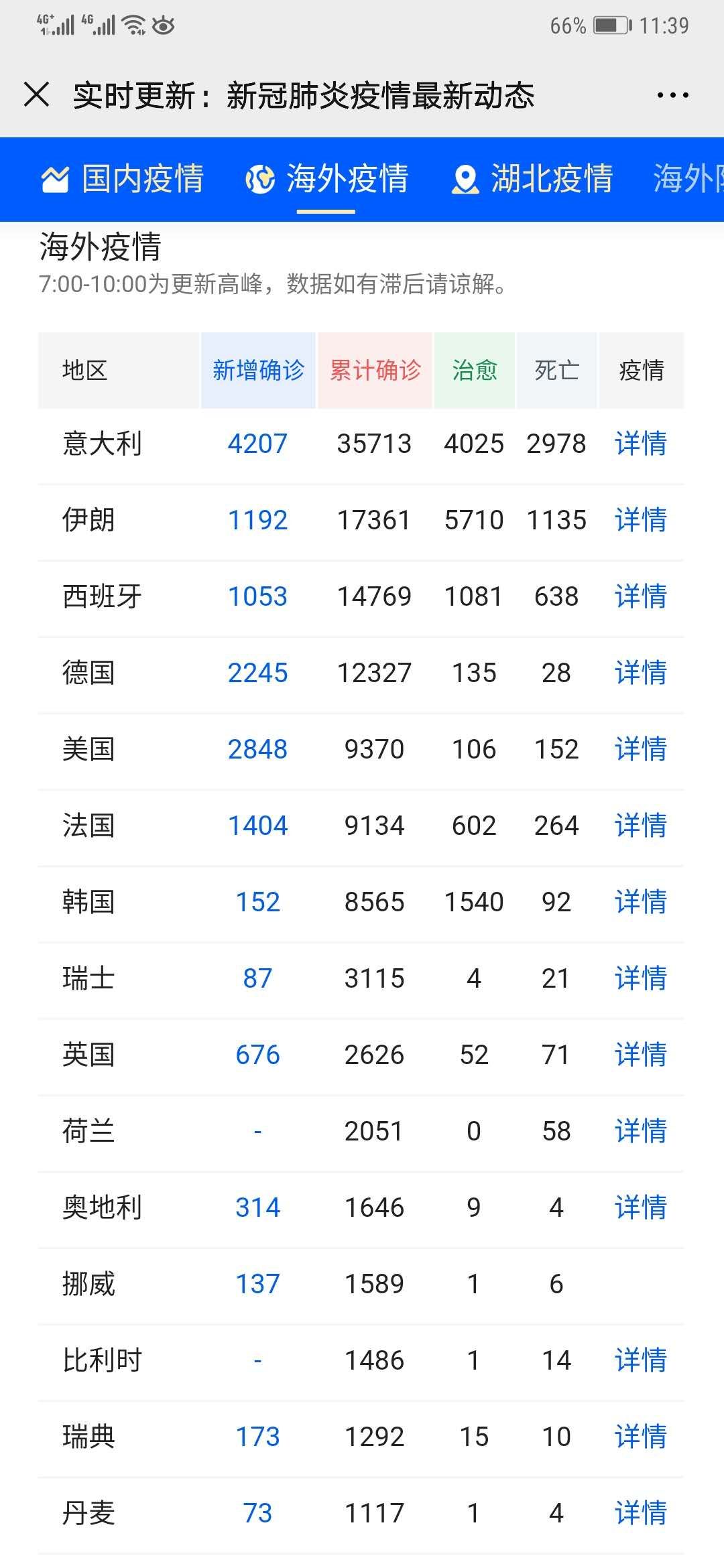 西班牙:据西班牙卫生部18日公布的数据,西班牙较前日新增新冠肺炎确诊病例2538例,累计确诊病例达13716例,其中598人死亡,774人病情危重,1081人治愈出院。