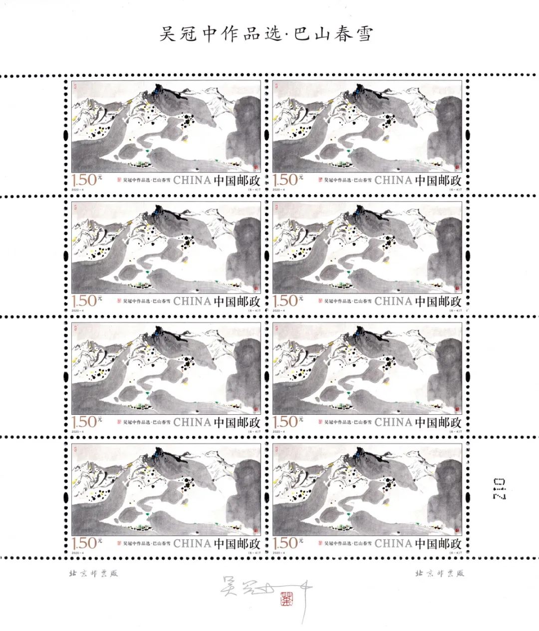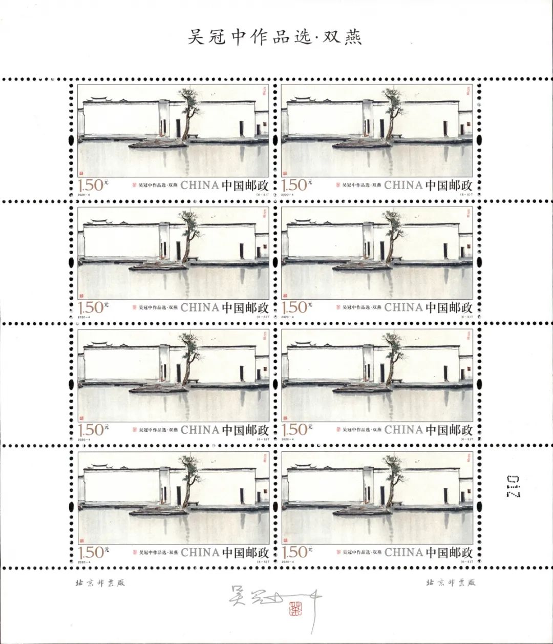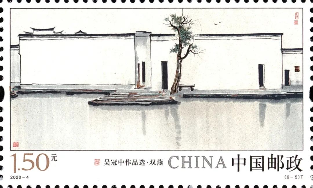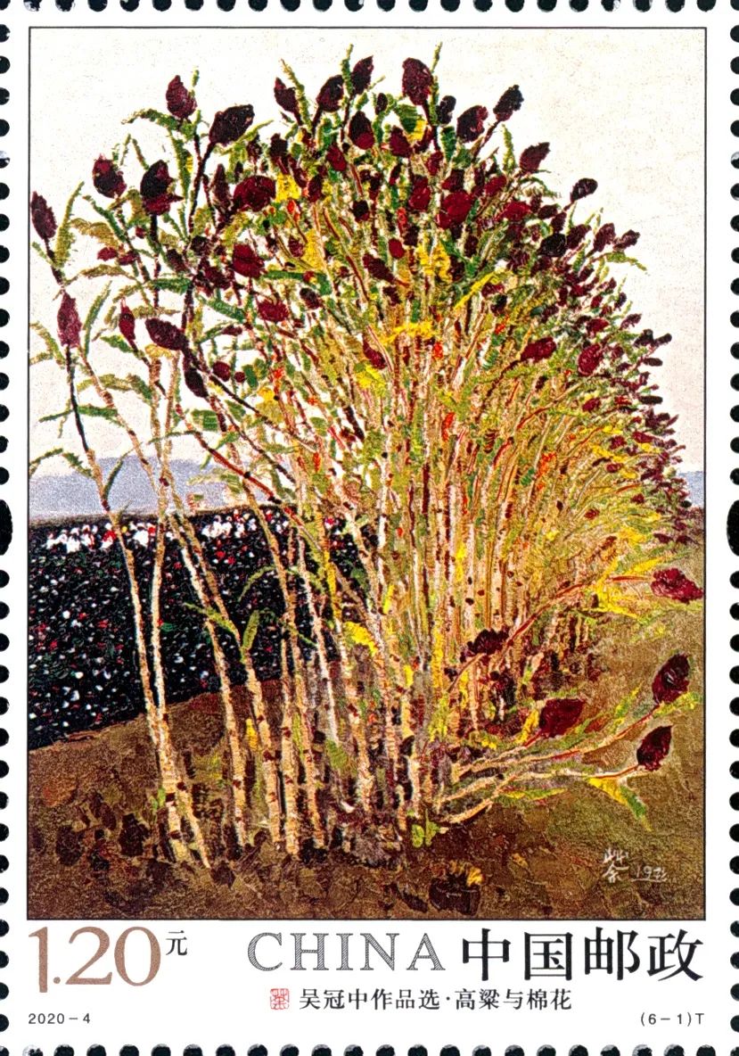 中国邮政定于2020年3月20日发行《吴冠中作品选》特种邮票一套6枚。邮票图案名称分别为:高粱与棉花、瓜藤、水巷、巴山春雪、鹤舞、双燕。全套邮票面值为9.60元。