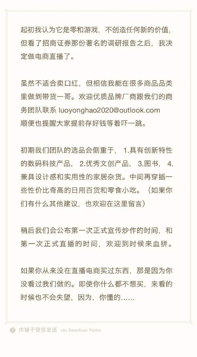 3月19日,锤子科技CEO罗永浩高调宣布:看了招商证券那份著名的调研报告之后,我决定做电商直播了。