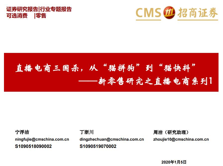 1月5日,招商证券发布一份名为《直播电商三国杀,从“猫拼狗”到“猫快抖”》的报告。