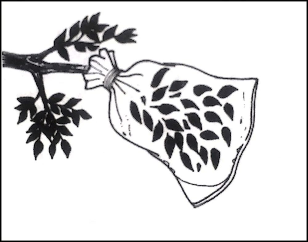把塑料袋罩在茂密的树枝外,随着叶子蒸发就会产生凝结水。