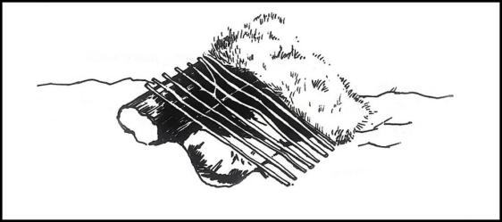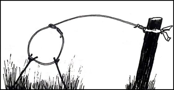 最简单的,直接用两根细树枝支撑金属绳套,就可以设置一个简易陷阱: