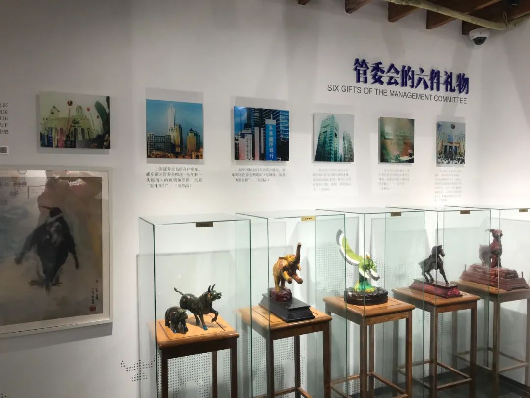 一楼还陈列了一组生动的动物艺术品——羊、马、鹰、象、牛、熊的雕像,与一幅企鹅的绘画。它们分别是当时管委会赠送给中国人民银行上海分行、日本富士银行、招商局大厦、泰华国际银行总部、上海证券交易所、日本八佰伴国际集团总部6件礼物的复制品。