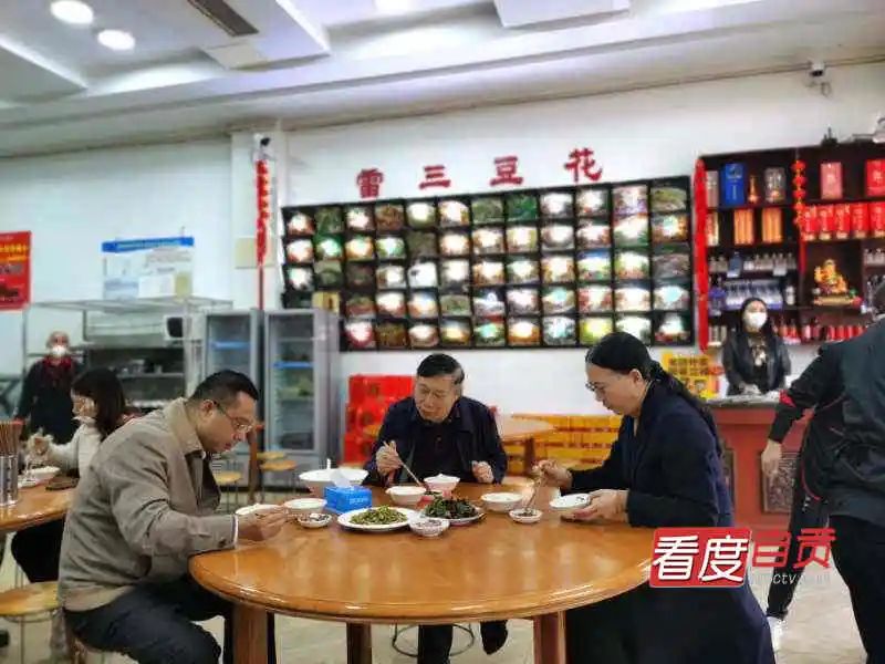 邹登权来到店门口,主动接受了体温检测,在就近一张餐桌坐下。桌上三碗豆花、一盘凉拌折耳根和一份炒苋蓝菜,他和县人大常委会主任郭洁,县委常委、统战部长邹发勇边吃边交谈,大家都露出舒心的笑容。餐后,邹登权、郭洁、邹发勇等各自通过微信付款。