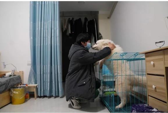 因为疫情,狗狗被原主人抛弃,何文文付清了600元寄养费,又买了300元狗粮,把它带回了家。