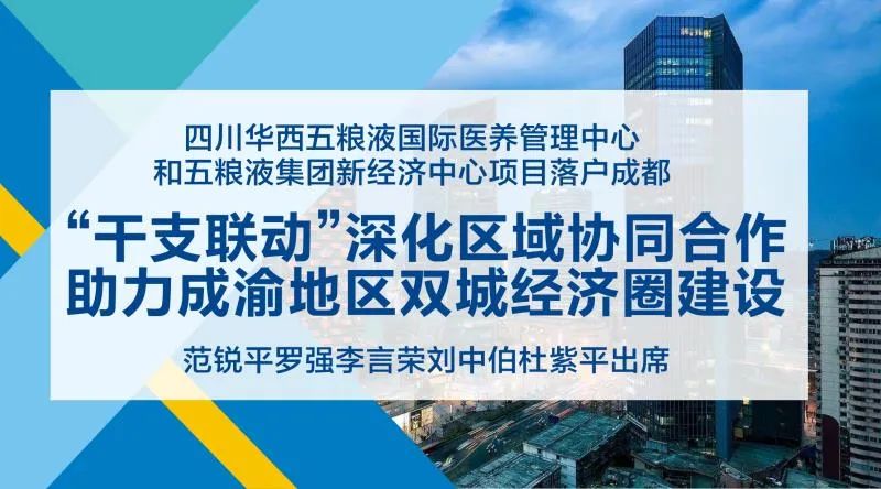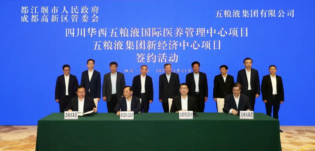 3月23日,四川华西五粮液国际医养管理中心项目和五粮液集团新经济中心项目在蓉签约。这是成都市与宜宾市落实“一干多支”发展战略,深化区域协同发展取得的又一重大合作成果。省委常委、成都市委书记范锐平,成都市委副书记、市长罗强,四川大学校长李言荣,宜宾市委书记刘中伯,宜宾市委副书记、市长杜紫平出席。
