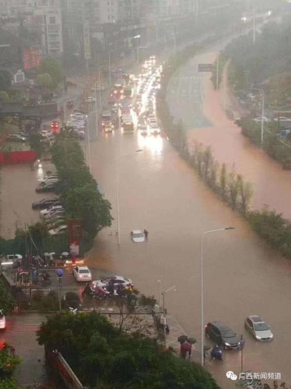 今天早上,南宁一场短时强降雨搅乱了早高峰人们出行的节奏,降雨十分猛烈,部分路段积水没过车顶。此外,#南宁暴雨#的话题也冲上微博热搜。