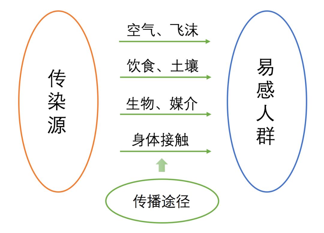 所幸,并不是蝙蝠携带的所有病毒都有机会感染人类。传染病必须具备三个基本条件:传染源、传播途径和易感动物。在病毒从蝙蝠传到人的过程中,携带病毒的蝙蝠就是传染源。其次对于传播途径来说,通常有直接接触传播或间接接触传播两种方式。譬如,吸血蝙蝠叮咬了某种动物,导致动物被感染,这叫直接接触传播;若是被叮咬的动物充当了媒介物,又将病毒传给了人类,那么这叫间接接触传播。另外,一些蝙蝠主要以水果为食,当携带病毒的蝙蝠吸食了水果的汁液以后,若是人类很快取食了这个水果而被病毒感染,这也叫做间接接触传播。病毒传播的第三个要素是易感人群,对于某种病原体缺乏免疫力而容易感染的人都称为易感人群。病原体的种类和毒力以及人体的内在因素,如免疫力和受体的表达水平等,都影响人体的易感性[5]。