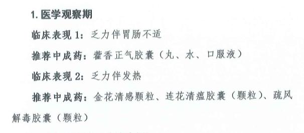 按照3月4日国家卫生健康委在官网发布《新型冠状病毒肺炎诊疗方案(试行第七版)》的内容,在医学观察期可以用的中成药有:蕾香正气胶囊(丸、水、口服液)、:金花清感颗粒、连花清瘟胶囊(颗粒)、疏风解毒胶囊(颗粒)这4种药。