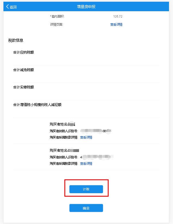 完成增量房信息采集后,便可通过该功能计算出应纳税款,完成该笔增量房交易的申报。具体操作如下: