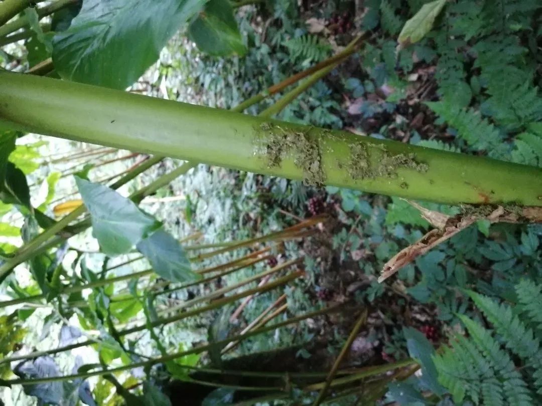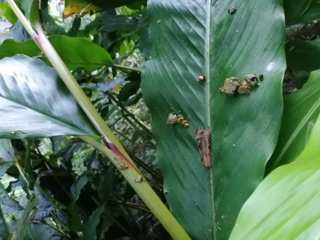 找了大半年,终于找到了!我激动地冲过去,在地上和草果叶上发现了一些粪便。还挺热的,不干也不稀。虽然碎了,但很有黏性,比冰淇淋粘稠一点。