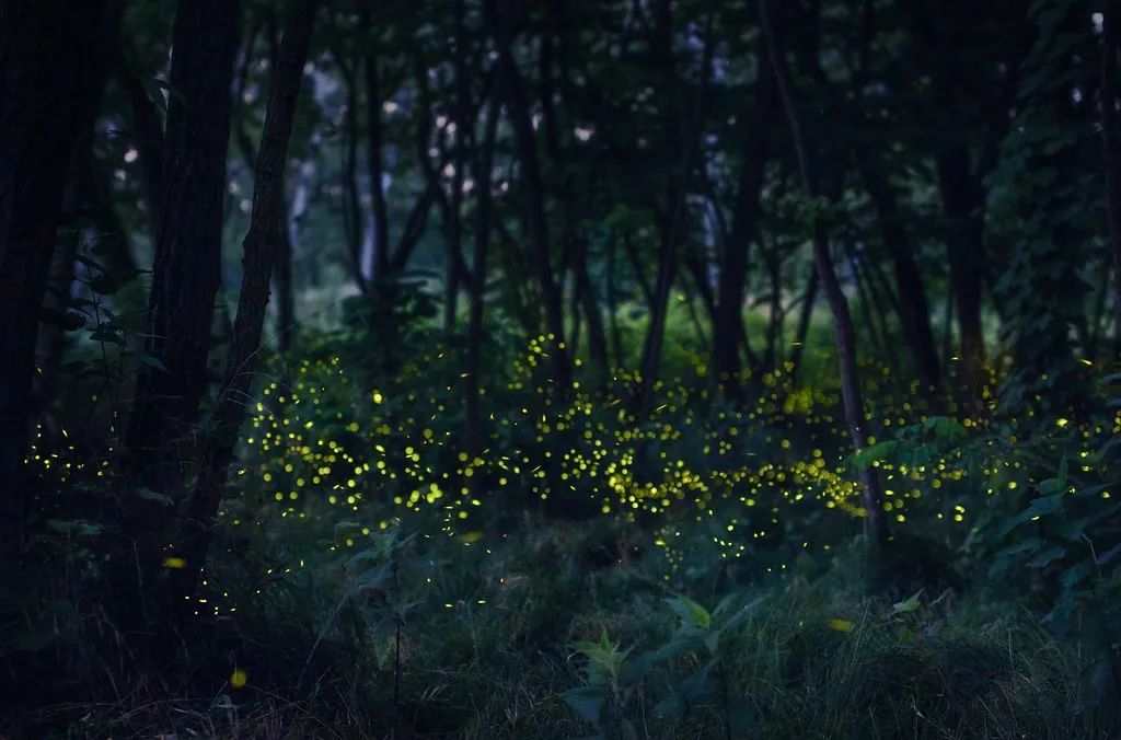 每到这时,我都会想,同龄的朋友们可能在城市的酒吧或 KTV 玩得正嗨。而我就这么早早地在深山里睡了,很安静。天没完全黑下去,带着些深蓝。森林里慢慢有萤火虫飞起来,在幽深的夜里一闪一闪。