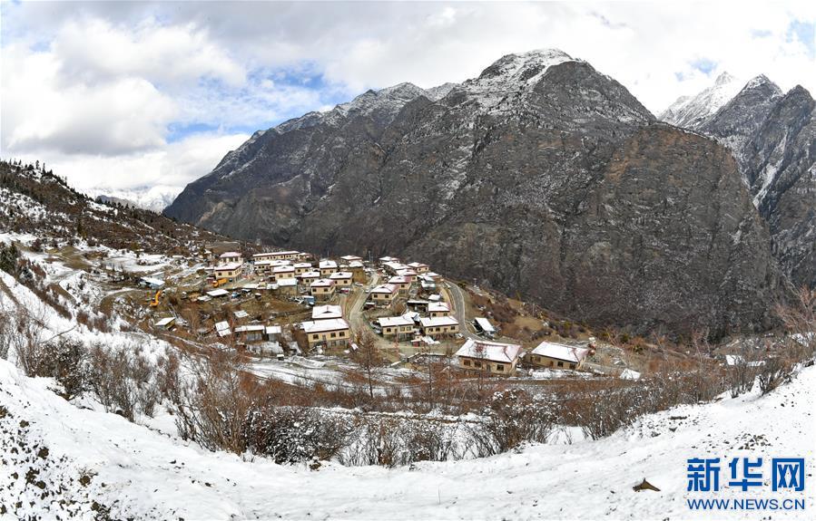 环抱在雪山中的林芝市西日卡村(3月20日摄)。新华社记者 张汝锋 摄