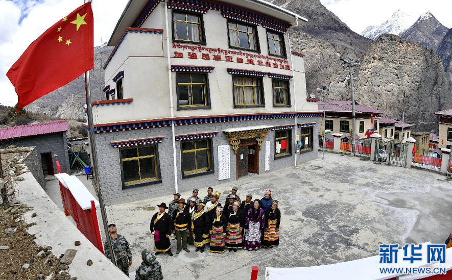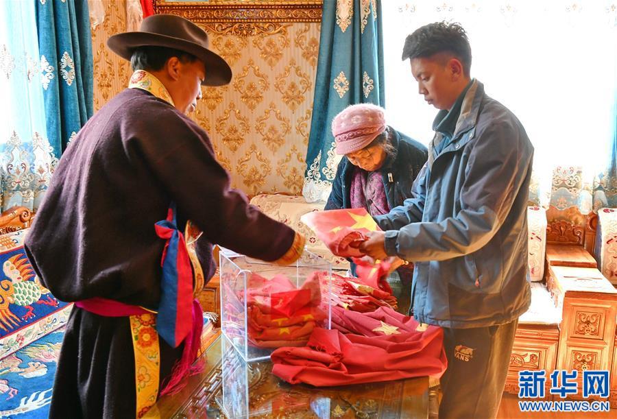 新房里,炉火烧得正旺,加措正在观摩儿子次旺班旦买来的可手摇升挂国旗。窗外,农家屋顶升起的国旗在风中飘扬。加措说:“我们地处边疆,一定守好祖国的大好河山。”
