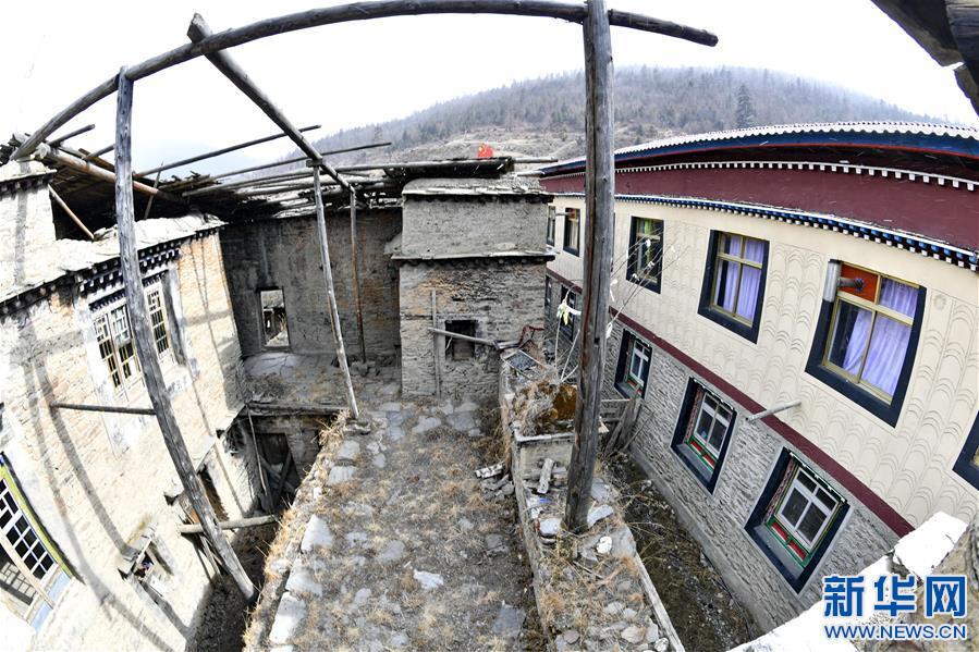 昔日闻名藏东的西日卡庄园(左)和今日西日卡村居民楼(右)(3月20日摄)。新华社记者 张汝锋 摄