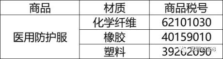 除特殊情况外,绝大部分防护服按照材质分类应归入下列税号: