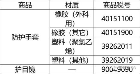 除特殊情况外,常见防护手套、护目镜应归入下列税号: