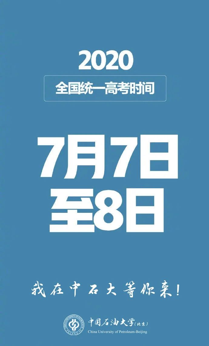 经党中央、国务院同意,2020年全国普通高等学校招生统一考试(以下简称“高考”)延期一个月举行,考试时间为7月7日至8日。