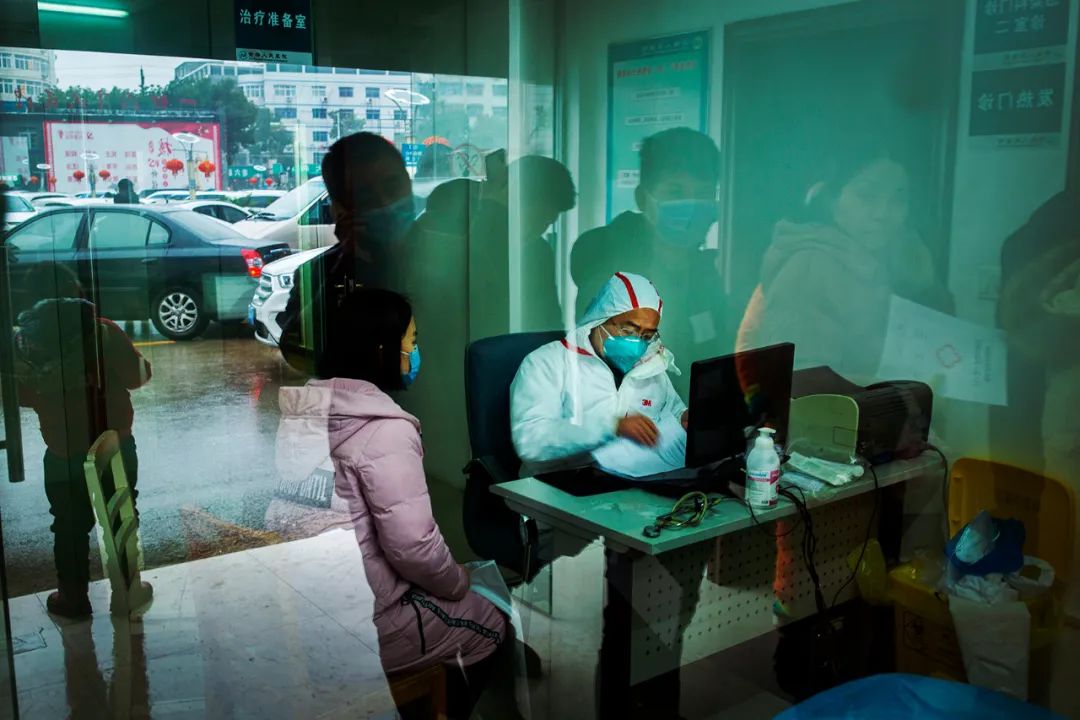 2020年1月24日,透过感染病科入院处窗户,可以看到护士站里的护士,虽然防护设施不能到位,但她们依然在一线冲锋。