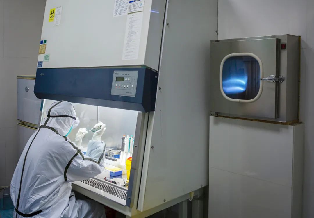 2020年1月24日,我们实验室开始做核酸检测了,图为张欣博士在PCR实验室作样本提起。之前几天的和算检测都是按要求送市疾控中心检测。