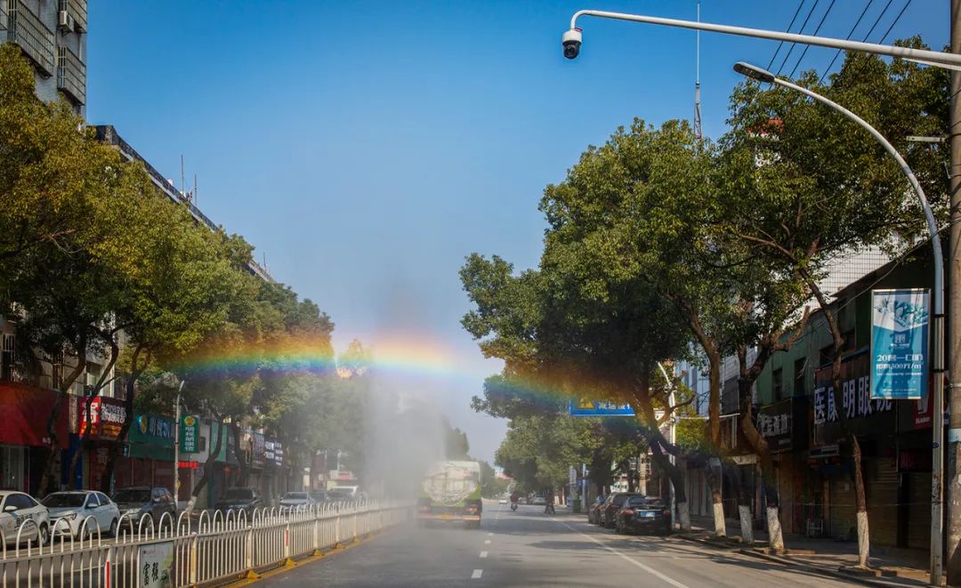 2020年2月23日,我在消毒车后面看得到美丽的景象。