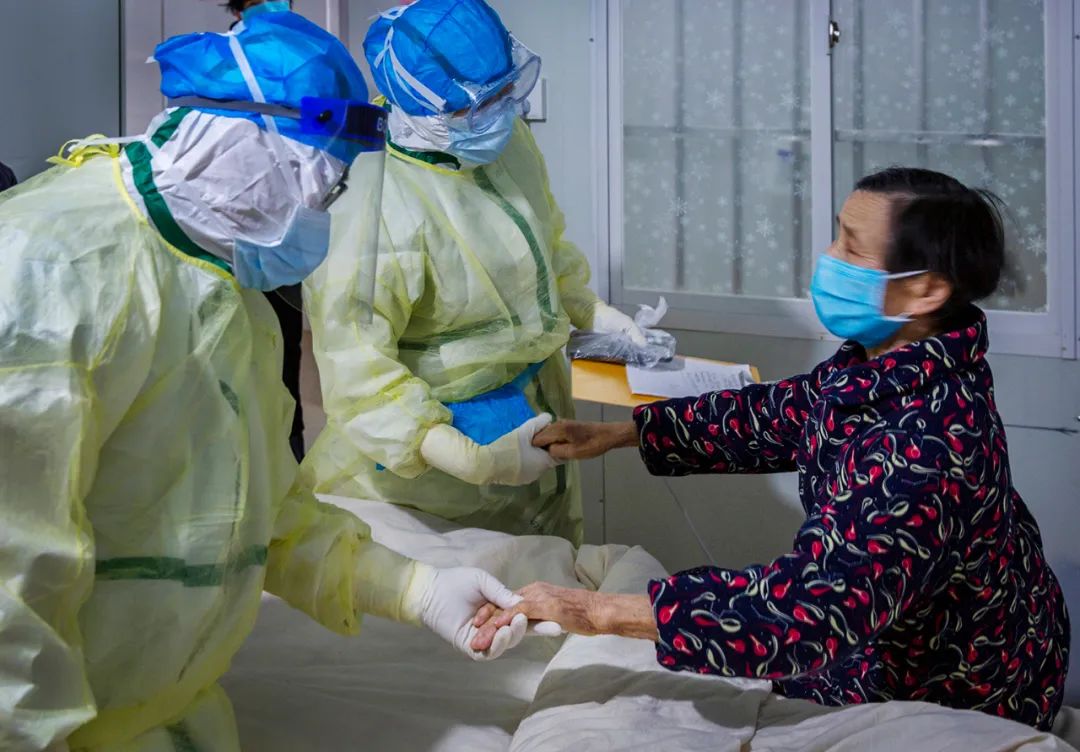 2020年3月6日,隔离治疗区里,医患手拉手。