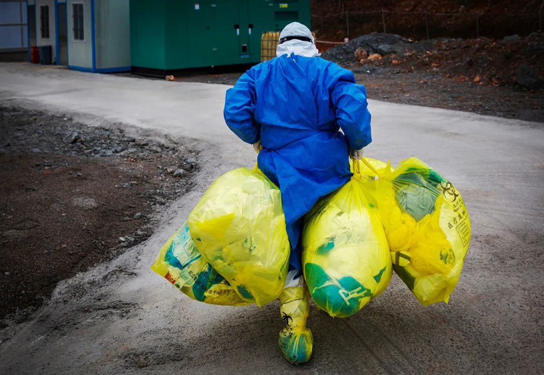 2020年3月6日,医院处理感染性医疗废物的清洁工。