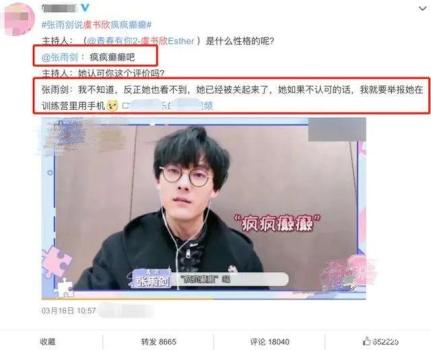 他评价虞书欣时,他只用了四个字,“疯疯癫癫”,倒是非常精准了。