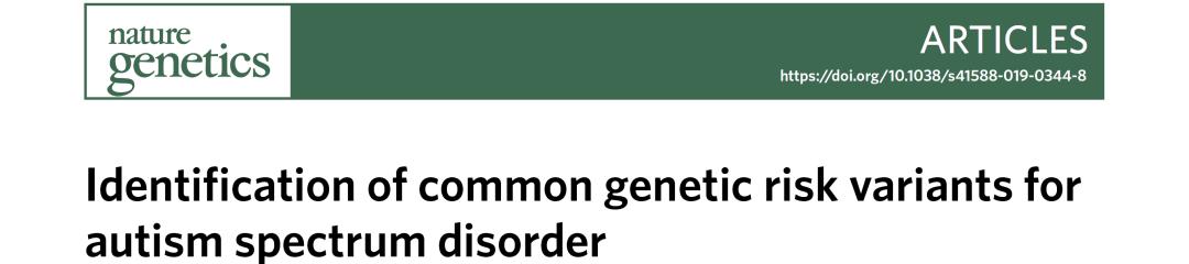 3. Grove J. Identification of common genetic risk variants for autism spectrum disorder. Nat Genet. 2019 Mar;51(3):431-444.