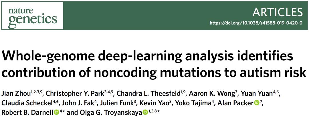 5. Zhou J. Whole-genome deep-learning analysis identifies contribution of noncoding mutations to autism risk. Nat Genet. 2019 Jun;51(6):973-980.