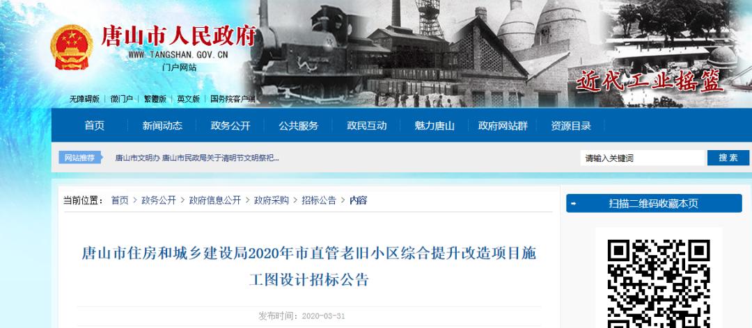 近日,中国·唐山网站发布《唐山市住房和城乡建设局2020年市直管老旧小区综合提升改造项目施工图设计招标公告》,公告显示,该项目对税东小区、唐钱楼小区、钢启新村小区等38个市直管老旧小区进行综合提升改造。详情如下: