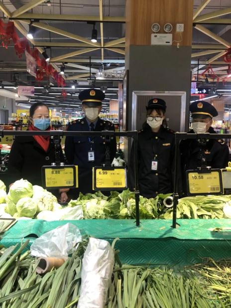 疫情期间,市场监管的重要职责之一是保障辖区物价稳定,张群带领执法人员深入到农贸市场、超市、药房等经营单位进行现场指导,发放《疫情防控承诺书》和《市场价格行为提醒告诫书》,宣讲价格政策,提醒告诫企业加强价格自律,依法经营。在检查过程中,根据群众反映的问题,第一时间赶赴现场,处理价格投诉等问题,特别是与疫情相关的口罩、酒精、温度计等必需物资相关的,严格做到24小时内核查并答复,坚决不让任何人发“疫情财”。