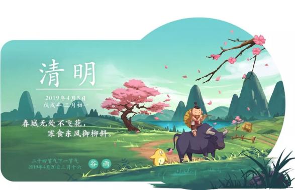 清明是节气与节日的合体,节气是“天时”,是纯粹的自然时间,节日是“人时”,它是社会文化的时间选择。作为二十四节气之一,清明最初主要为时令的标志,时间在冬至后107日、春分后15日,公历的4月5日前后。《淮南子·天文训》记载:春分后十五日,斗指乙,则清明风至。清明风古称八风之一,它温暖清爽;在和煦的春风之下,天地明净,空气清新,自然万物显出勃勃生机。“清明”节气由此得名。清明是春天的节气,春天是四季之始,也是农业播种的时节,民谚有“清明前后,种瓜点豆”。