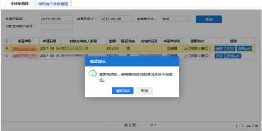 选择了“三方协议”缴款方式的申请单在审核通过后,系统会自动完成缴款。