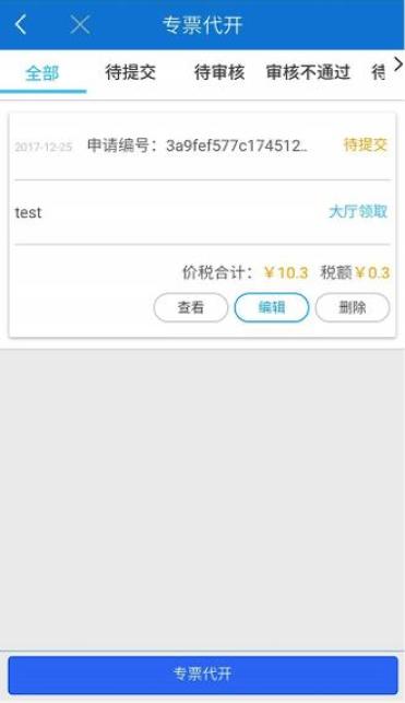 查看申请代开的全部信息,进行提交、缴税,可查看申请代开发票的状态。