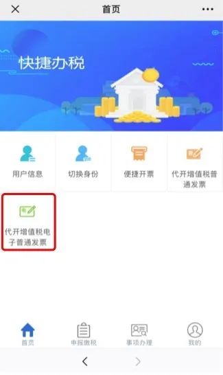 选择我要办税——事项办理——增值税电子普通发票代开。