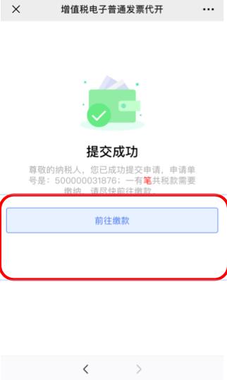 预览代开申请填写数据无误后点击“确认提交”,提交成功后“前往缴款”。