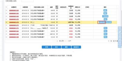 选择要查看的申请单,点击“查看发票”按钮可查看并下载发票信息。