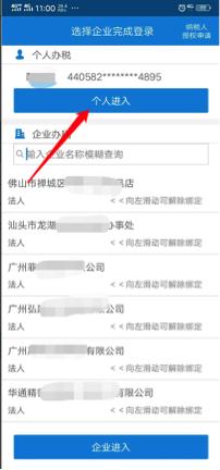 打开“广东税务”手机APP,点击“我的”——“点击登录/注册”,进入登录、注册页面。在登录页面选择登录方式输入账号密码,拖动滑块通过验证后,点击“登录”,弹出身份选择页面,点击“个人进入”。
