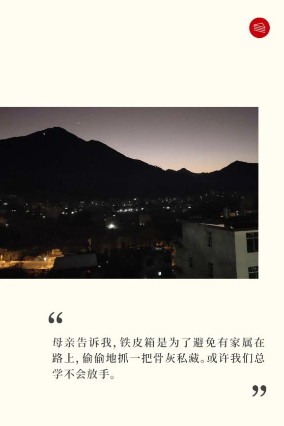 父亲开车随行,母亲告诉我,铁皮箱是为了避免有家属在路上,偷偷的抓一把骨灰私藏。或许我们总学不会放手。