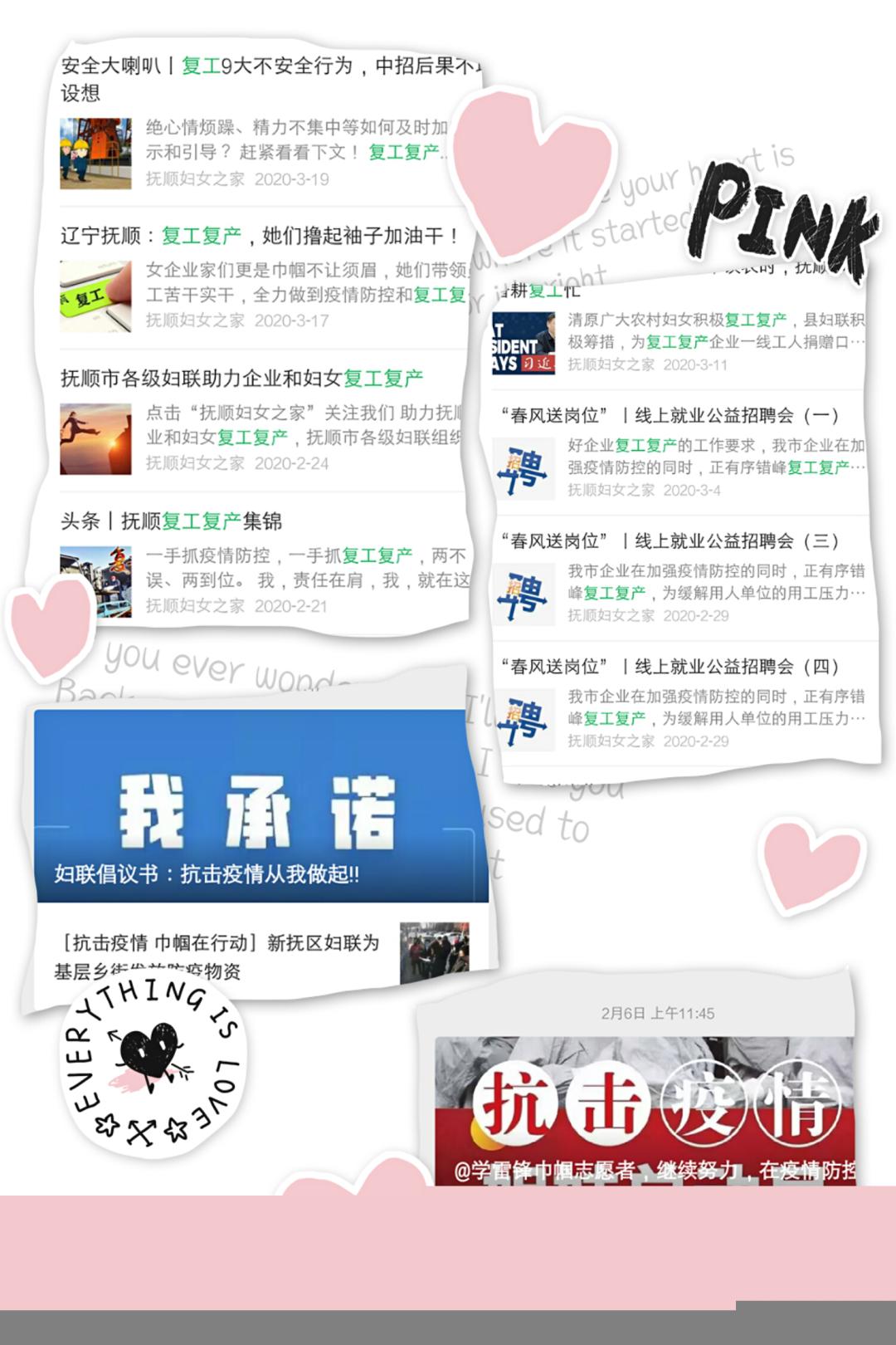 防疫抗疫不松懈,复工复产正当时。连日来,抚顺市各级妇联在市委市政府和省妇联的统一领导下,团结动员全市广大妇女积极投身到企业复工复产大军中,立足岗位送服务,竭尽所能解难题,为抚顺经济社会发展贡献巾帼力量。