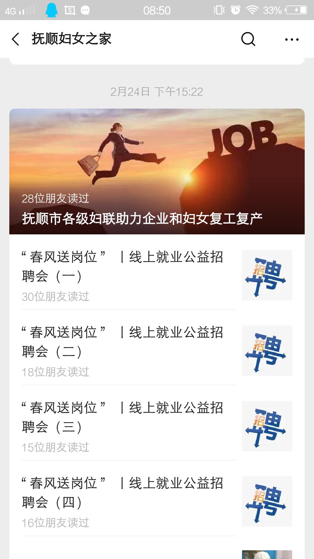 组织线上公益招聘,搭建用工求职平台。与市就业和人才服务中心、抚顺人才市场联合开展2020年“春风送岗位”线上就业公益招聘会活动。点对点与60多个女企业家联系,多方收集整理汇总用工招聘信息。用工招聘信息连续2周在“抚顺妇女之家”“抚顺人才”“抚顺就业”微信公众号、抚顺市就业网、抚顺人才网,以及头条和微头条等网络平台播发,浏览、阅读量达17394人次。全市各级妇联组织累计发布企业招聘信息10期,组织207家企业参与,提供就业岗位3413多个,实现了足不出户招工用工,求职就业。