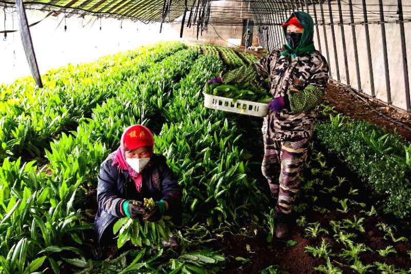 拉古陡山村晟源蔬菜合作社工作人员采摘蔬菜