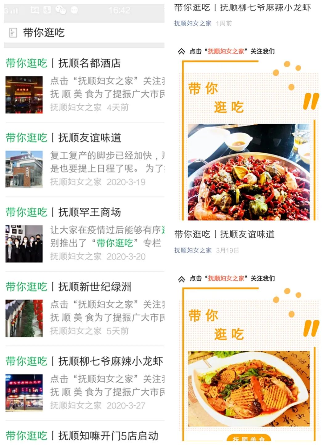 开设消费专栏,提振消费信心。为提振广大市民的消费信心,助力我市三产复工步伐,市妇联在微信公众号“抚顺妇女之家”开设“带你逛吃”专栏,介绍本地特色餐饮和老牌商场,发布店铺防疫举措,优惠活动、招牌商品等,引导带动广大市民放心消费。